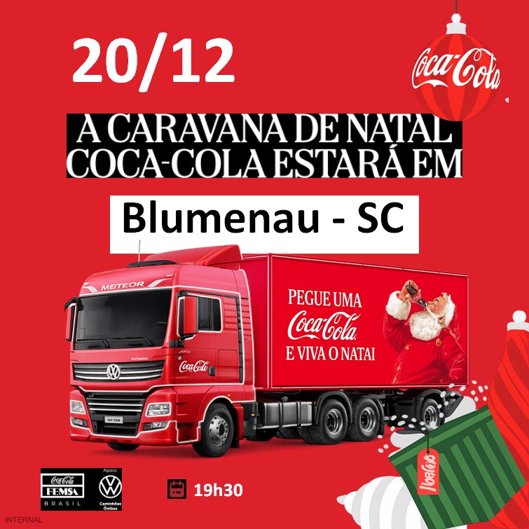 Caravana de Natal da Coca-Cola chega a Blumenau neste sábado, dia 20